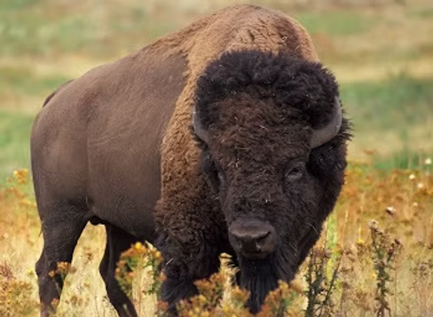 Bison are the largest native grazer of America’s Northern Great Plains and are North America’s largest terrestrial mammal. Bison can weigh up to a whopping 2,000 pounds, reaching a length of up to 12 feet. Despite their mass, they can still hit speeds of 40 miles per hour when running. Male and females are look very similar but have some subtle differences. Females have a smaller head in a oval shape, an arrow forehead. They also have smaller horn bases that are approx. 2” diameter in yearlings and approx. 2–2½ ” diameter in mature females. Males on the other hand have a larger head in a "V" shape, broader forehead and have larger horn bases. Yearling male bases are approx. 2¾” diameter while mature Bulls bases approx. 3½” + diameter.