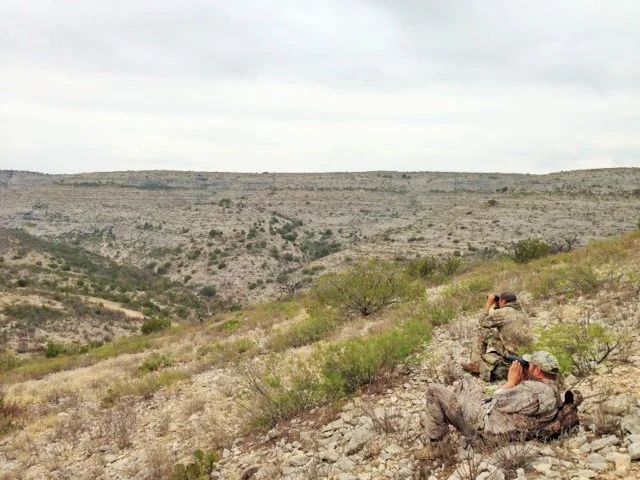 This hunt takes place on a private free range ranch, located near Comstock, Texas. This ranch is known for several large herds of self sustaining free range aoudad sheep! The terrain is very rugged, with many steep-walled canyons, arroyos and senderos; ideally suited for both Aoudad and Corsican habitats.